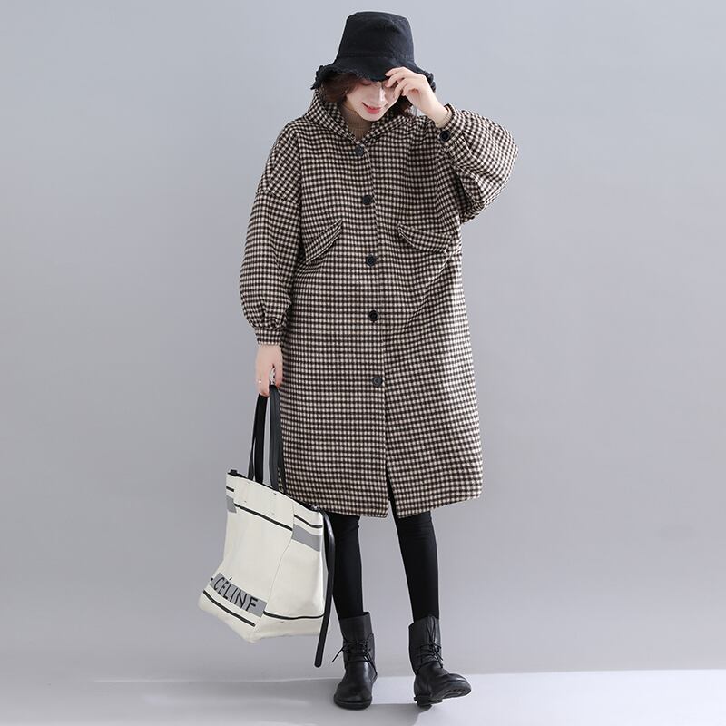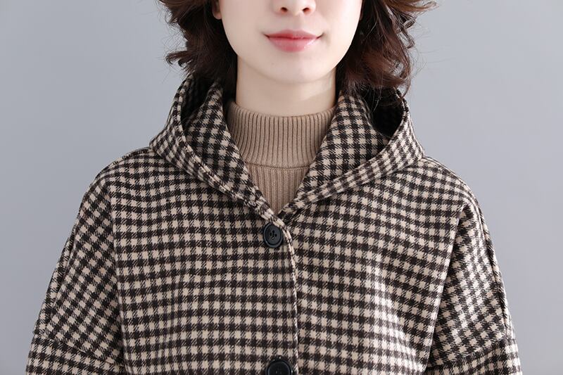 アウター 40代ファッション 秋冬 エレガント きれいめ 大人 30代 40代 50代 ウール調 チェック柄 コート フード付き 中綿 キルティング裏地 ボタン ゆったり ルーズ オーバーシルエット ドロップショルダー カジュアル 可愛い ナチュラル 体型カバー 通勤 お出かけ デート RB-A10-0100