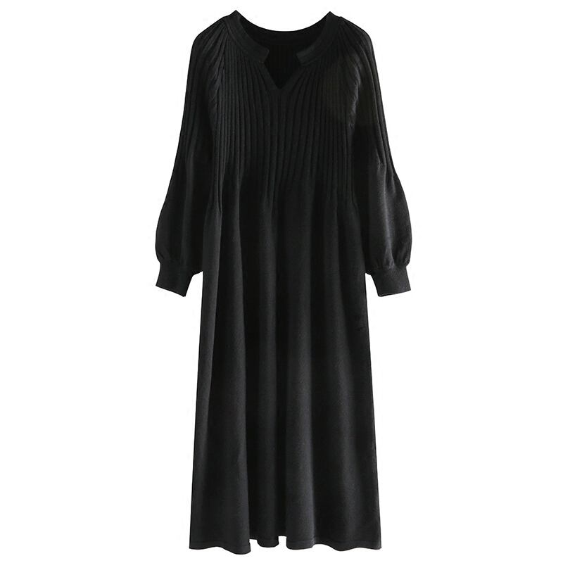 レディースファッション 40代 ファッション 秋冬 エレガント きれいめ 大人 30代40代50代 ニットワンピース ロング丈 長袖 キーネック 切替 リブ 伸縮性 シンプル 大人可愛い 体型カバー お出かけ デート RB-A10-0183