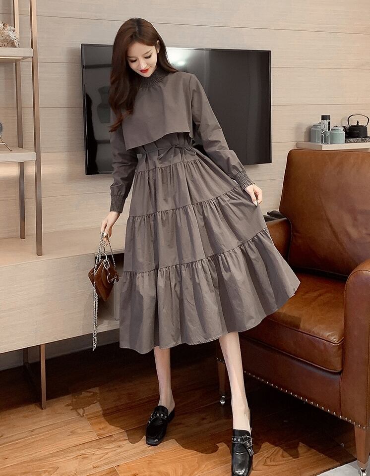 レディースファッション 40代 ファッション 秋冬 エレガント きれいめ 大人 30代40代50代 ワンピース 長袖 ミモレ丈 ボトルネック フェイクレイヤード ティアード Aライン 無地 大人可愛い スタイルアップ RB-A10-0184