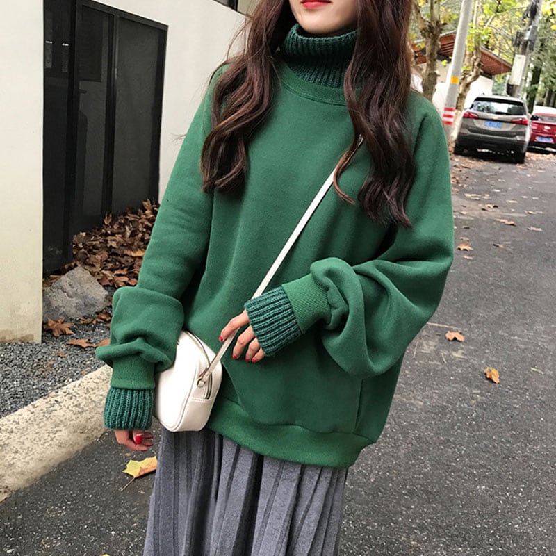 レディースファッション 40代 ファッション 秋冬 エレガント きれいめ 大人 30代40代50代 ハイネック トレーナー スウェット 長袖 切替 レイヤード風 裏起毛 あたたか ゆったり ルーズ 無地 シンプル カジュアル デイリー 普段着 RB-A10-0189