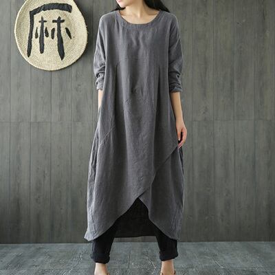 レディースファッション 40代 ファッション 秋冬 エレガント きれいめ 大人 30代40代50代 長袖 ワンピース ラウンドネック フロントクロス サイドポケット ロング丈 ロングワンピ デザインワンピ ゆったり リラックス カジュアル ナチュラル 無地 大きいサイズ RB-A10-0212