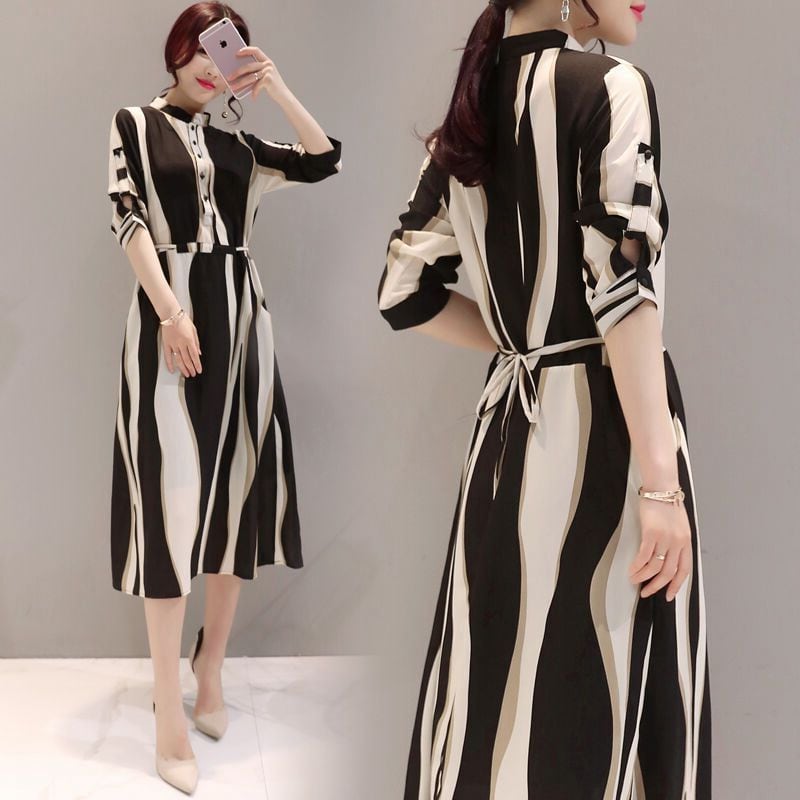 レディースファッション 40代 ファッション 秋冬 エレガント きれいめ 大人 30代40代50代 シフォン Aライン ワンピース 7分袖 バンドカラー ウエスト切替 幾何学模様 リボン 落ち感 シック モダン 着やせ 通勤 デート お呼ばれ RB-A10-0214