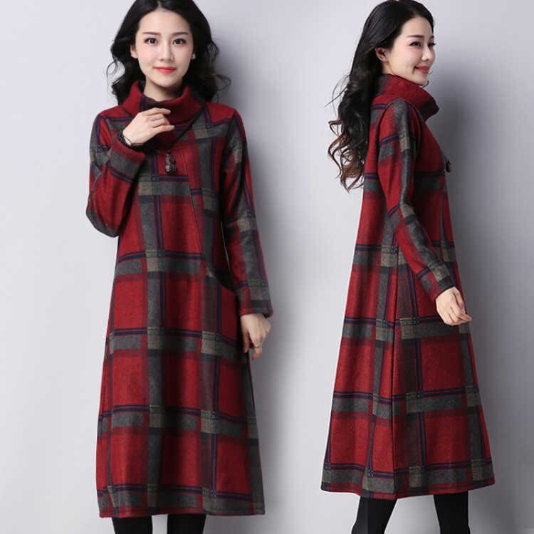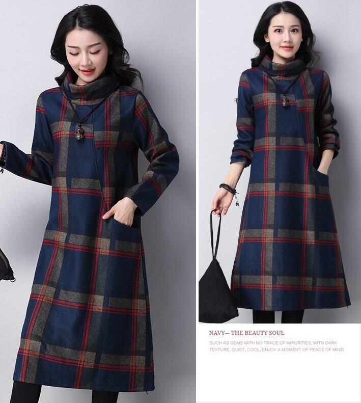 レディースファッション 40代 ファッション 秋冬 エレガント きれいめ 大人 30代40代50代 チェック柄 Aライン ワンピース 長袖 ロング丈 タートルネック ウール調 ポケット付き あたたか カジュアル 可愛い 体型カバー お出かけ 女子会 RB-A10-0218