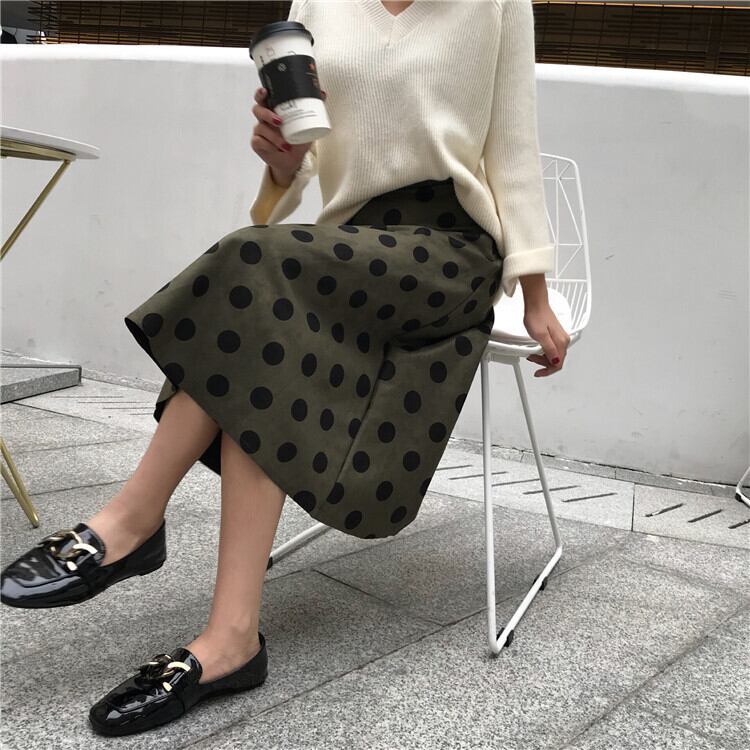 レディースファッション 40代 ファッション 秋冬 エレガント きれいめ 大人 30代40代50代 スエード風 ドット柄 水玉 Aライン スカート ミモレ丈 ハイウエスト カジュアル ポップ 大人可愛い 美脚効果 お出かけ デート RB-A10-0222