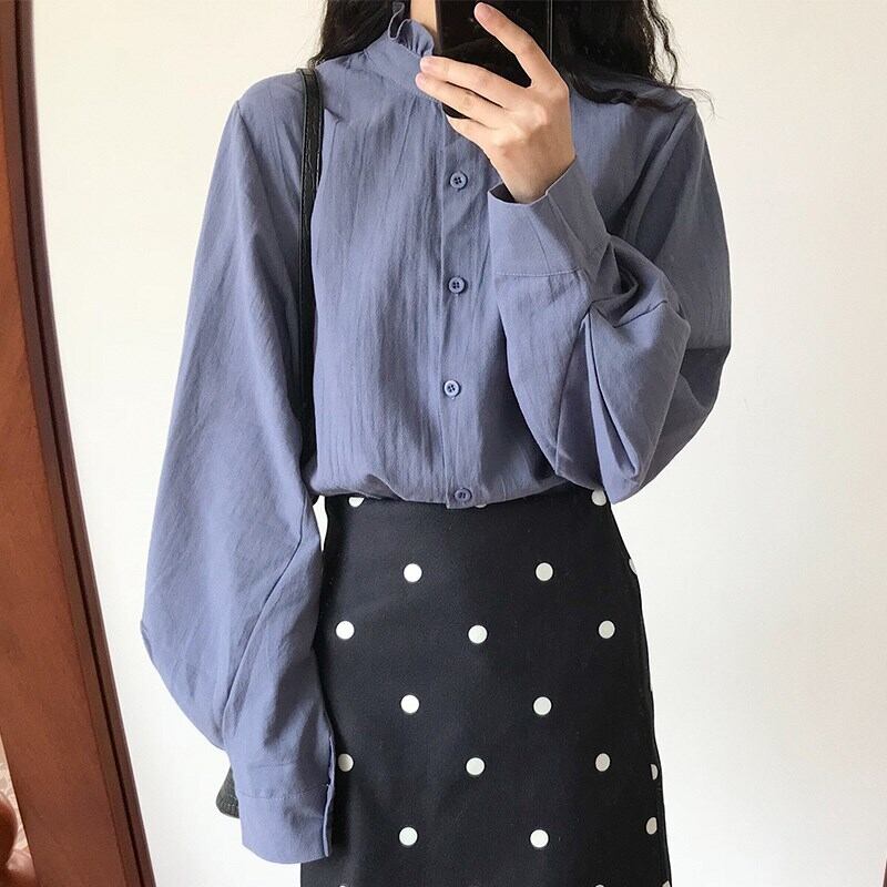 レディースファッション 40代 ファッション 秋冬 エレガント きれいめ 大人 30代40代50代 花柄 無地 フリル ブラウス スタンドカラー フリル襟 長袖 ランタンスリーブ 可愛い 通勤 オフィス お出かけ RB-A10-0224