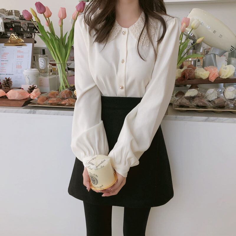 レディースファッション 40代 ファッション 秋冬 エレガント きれいめ 大人 30代40代50代 レース襟 長袖 ブラウス パールボタン シンプル 上品 フェミニン 大人かわいい 通勤 オフィス OL お呼ばれ デート RB-A10-0225