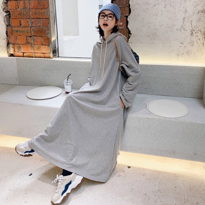 レディースファッション 40代 ファッション 秋冬 エレガント きれいめ 大人 30代40代50代 フード付き カットソーワンピース ロング丈 Aライン 長袖 ゆったり ルーズ 無地 シンプル カジュアル 体型カバー 着やせ 普段着 お出かけ RB-A11-0006