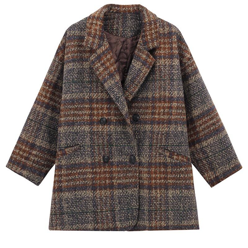 レディースファッション 40代 ファッション 秋冬 エレガント きれいめ 大人 30代40代50代 チェック柄 ウール調 コート チェスターコート ハーフ丈 ダブルボタン ルーズ オーバーサイズ ゆったり アウター シック トラッド カジュアル 通勤 デート 女子会 RB-A11-0024