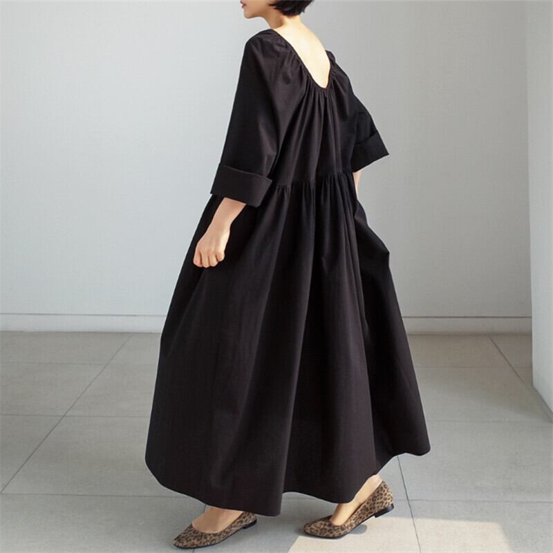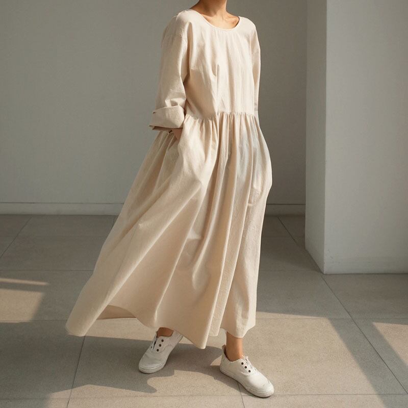 レディースファッション 40代 ファッション 秋冬 エレガント きれいめ 大人 30代40代50代 Uネック ロングワンピース ロング丈 ワンピース 長袖 ギャザー ゆったり ルーズ オーバーシルエット 体型カバー マタニティウェア 無地 カジュアル シンプル ナチュラル RB-A11-0039