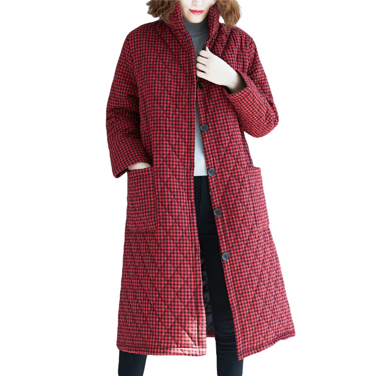 コート キルティングコート チェック柄 落着き 大人かわいい 個性的 防寒 裏起毛 暖かい RB-K10-0017