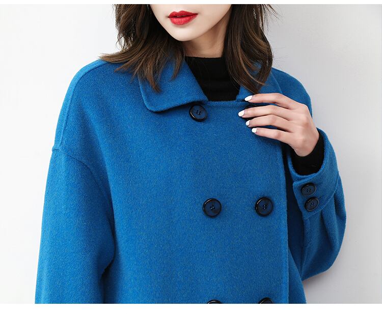 レディースファッション 40代 ファッション 秋冬 エレガント きれいめ 大人 30代40代50代 ウールコート ロングコート ダブルボタン 無地 シンプル きれい色 ブルー あたたか 通勤 お出かけ デート RB-A11-0056