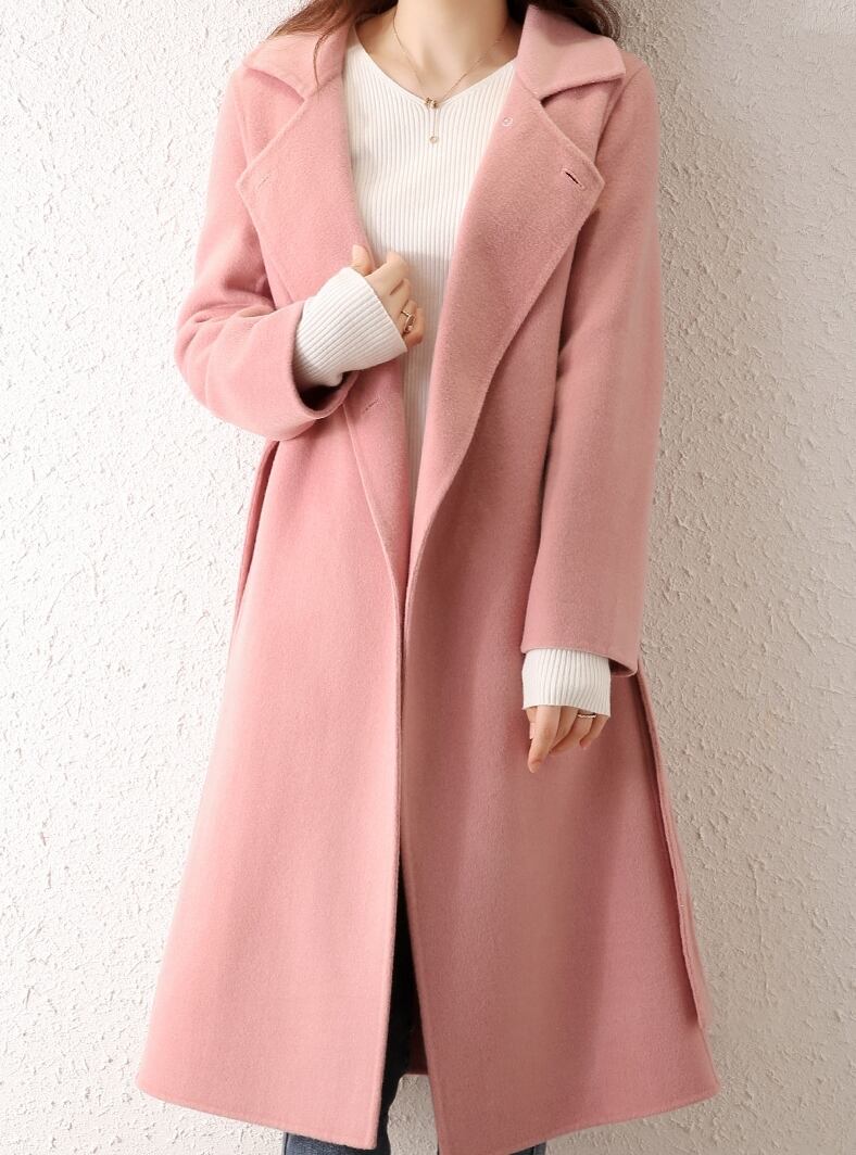 レディースファッション 40代 ファッション 秋冬 エレガント きれいめ 大人 30代40代50代 ウールコート ミモレ丈 ダブルボタン ベルト付き 無地 ベーシック あたたか スリム くすみカラー 通勤 デート RB-A11-0061