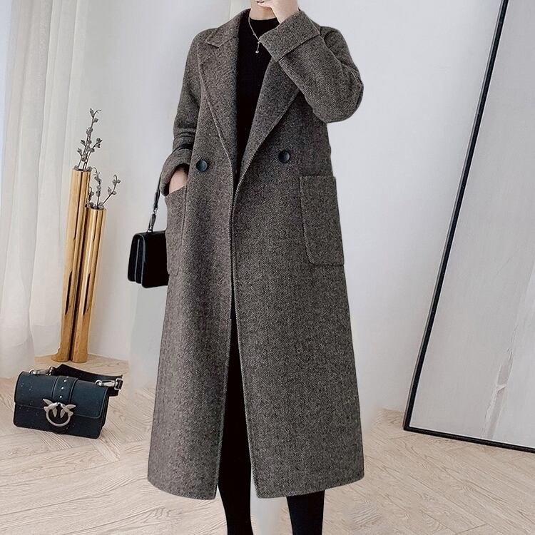レディースファッション 40代 ファッション 秋冬 エレガント きれいめ 大人 30代40代50代 ヘリンボーン ロングコート ダブルボタン ベルト付き トラッド マニッシュ オシャレ 通勤 お出かけ デート RB-A11-0062