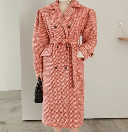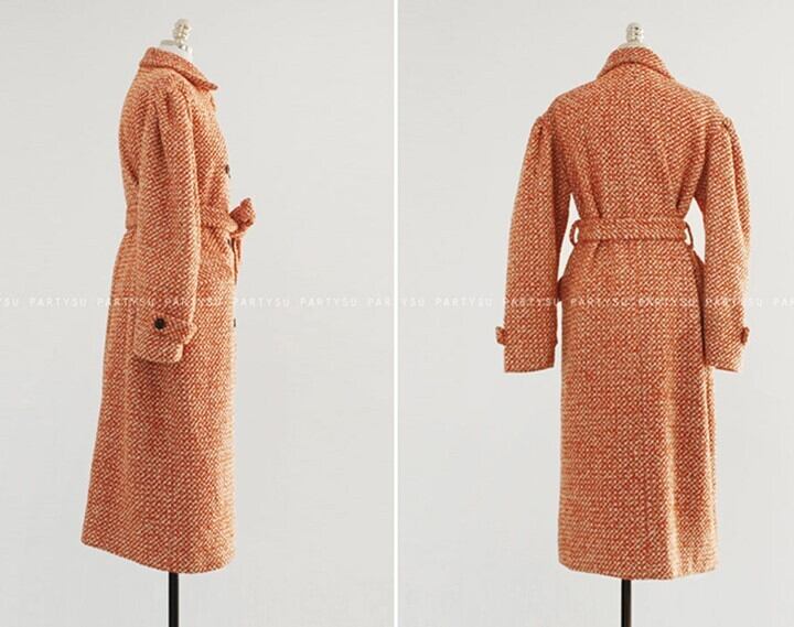 レディースファッション 40代 ファッション 秋冬 エレガント きれいめ 大人 30代40代50代 ツイード風 コート ミモレ丈 ダブルボタン ベルト付き クラシカル 上品 シック お出かけ デート 通勤 RB-A11-0072