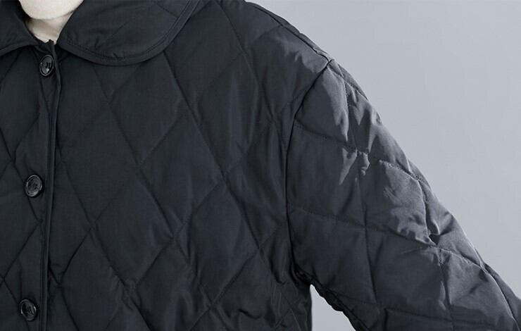 キルティングコート 中綿コート シングルボタン ひざ丈 軽い あたたか アウター 無地 ブラック 着回し 体型カバー シンプル カジュアル 30代40代50代 秋 冬 RB-A12-0007