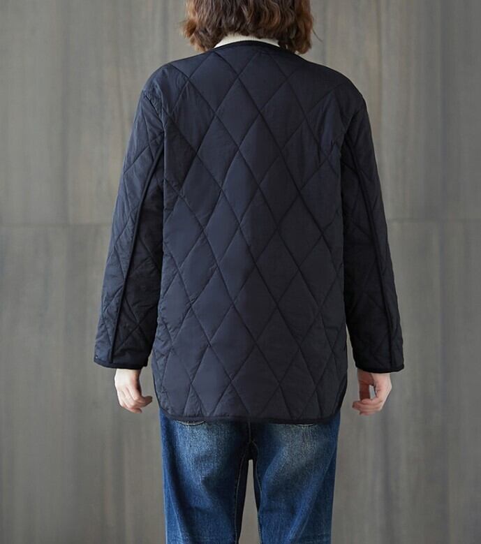 ノーカラー キルティング ジャケット コート ショート丈 中綿コート シングルボタン 後下がり 無地 シンプル カジュアル あたたか 軽い 通勤 お出かけ アウター 30代40代50代 秋 冬 RB-A12-0010
