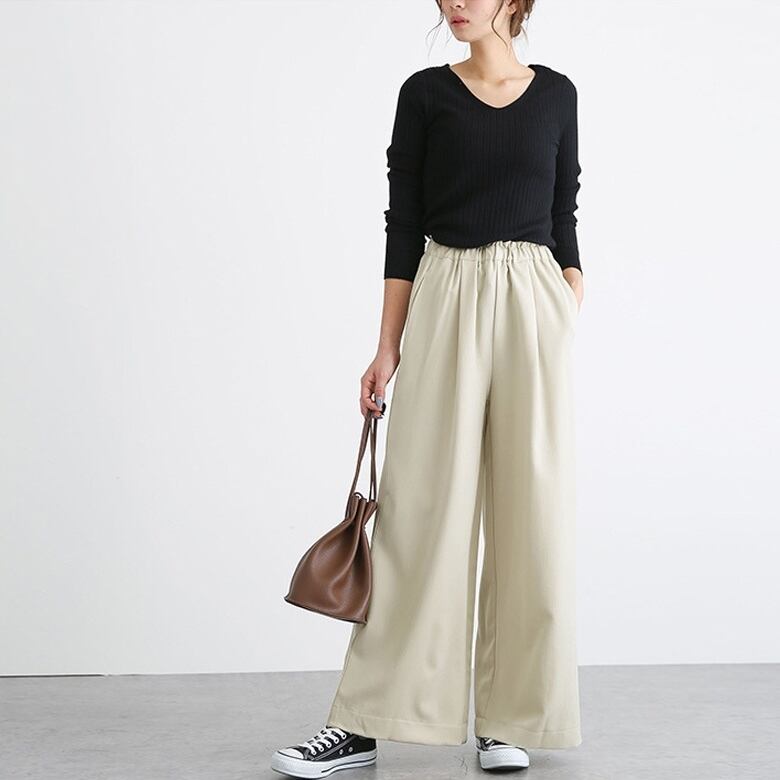 ハイウエスト ワイドパンツ ルーズ ストレート ボトムス ウエストゴム 無地 ラクチン カジュアル ゆったり 下半身カバー デイリー 普段使い お出かけ 30代40代50代 RB-A12-0014