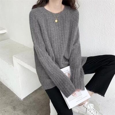 長袖 ニット セーター ラウンドネック リブニット ラグランスリーブ ゆったり ルーズ シンプル カジュアル 着回し 普段着 通勤 お出かけ デート 30代40代50代 秋 冬 RB-A12-0043