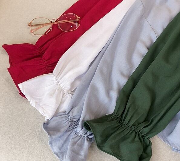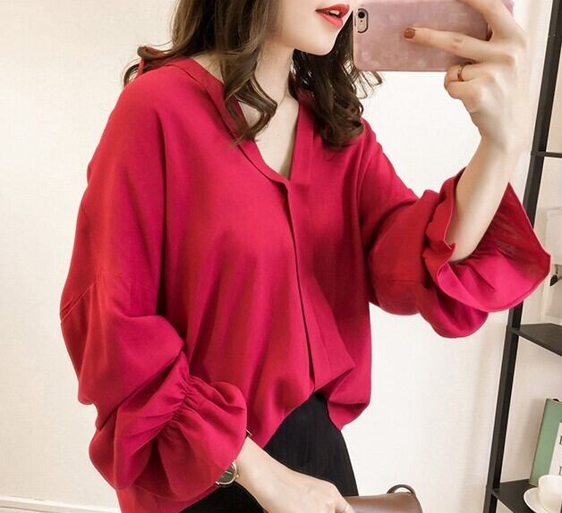 韓国風 ブラウス シャツ 長袖 キーネック キャンディスリーブ 無地 落ち感 きれいめ フェミニン 通勤 オフィス お出かけ 30代40代50代 秋 冬 RB-A12-0046