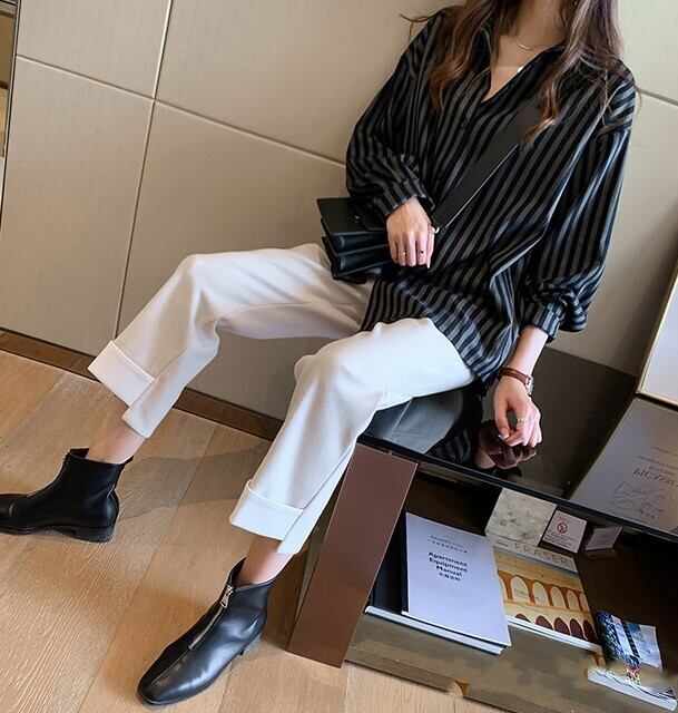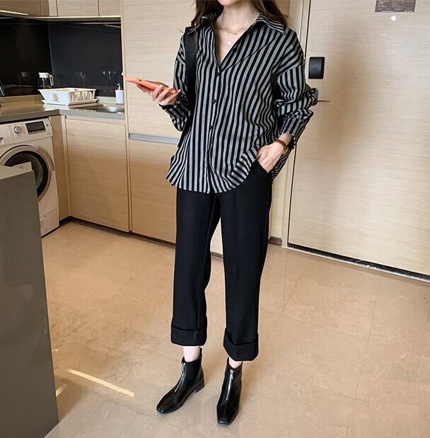 長袖 シャツ ストライプ柄 ルーズ マニッシュ メンズライク カジュアル 細見え 着やせ 通勤 オフィス お出かけ 30代40代50代 秋 冬 RB-A12-0047