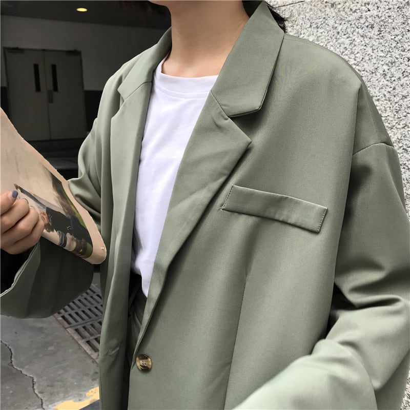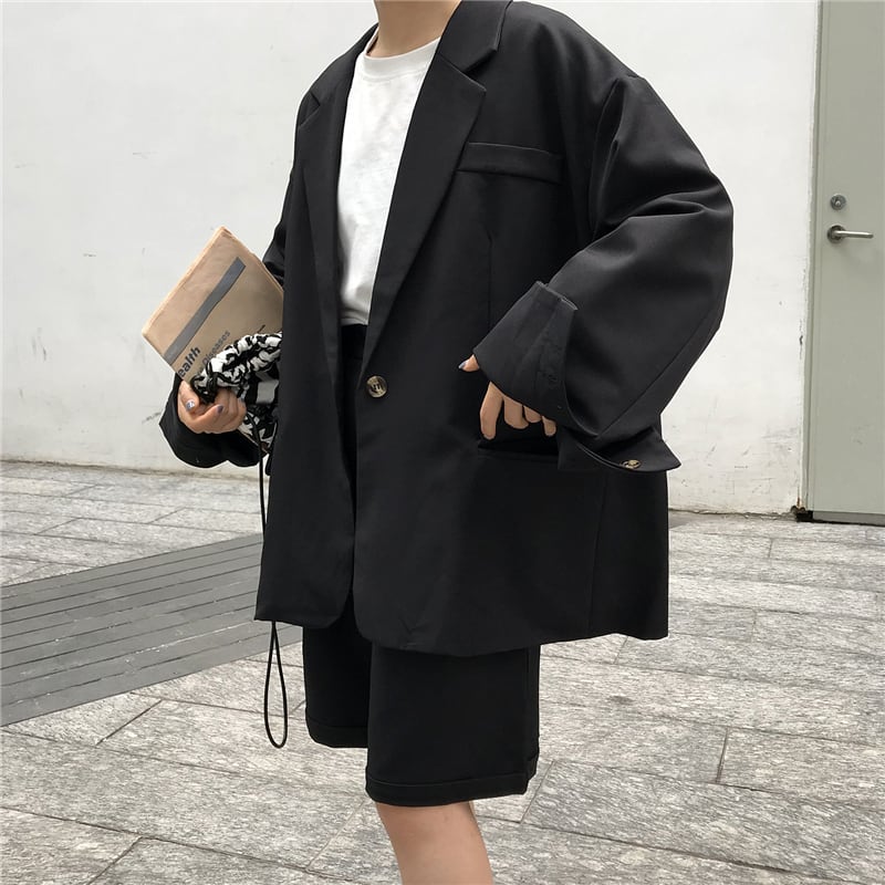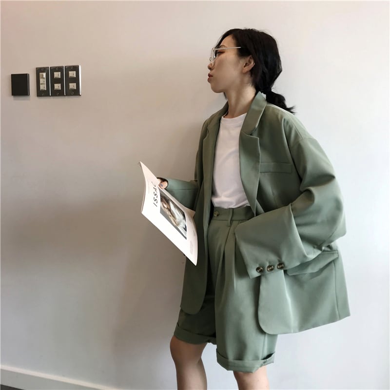 セットアップ ショートパンツ 20代 30代 40代 くすみカラー 2点セット ツーピース 無地 ルーズ テーラードジャケット ハーフパンツ カジュアル ボーイズライク カッコいい お出かけ デート 通勤 韓国 春秋 RB-R3-A02-0014