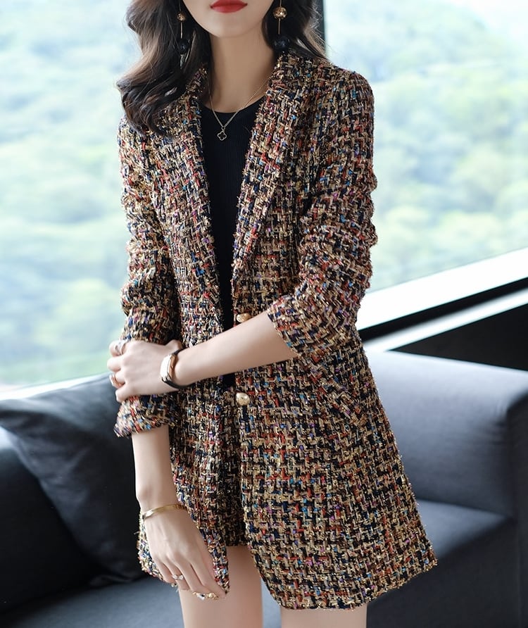 セットアップ ショートパンツ 20代 30代 40代 くすみカラー 2点セット ツーピース ツイード風 ロングジャケット 長め丈 スリム クラシカル 上品 シック 大人女子 通勤 お出かけ パーティ― イベント 春秋 RB-R3-A02-0018
