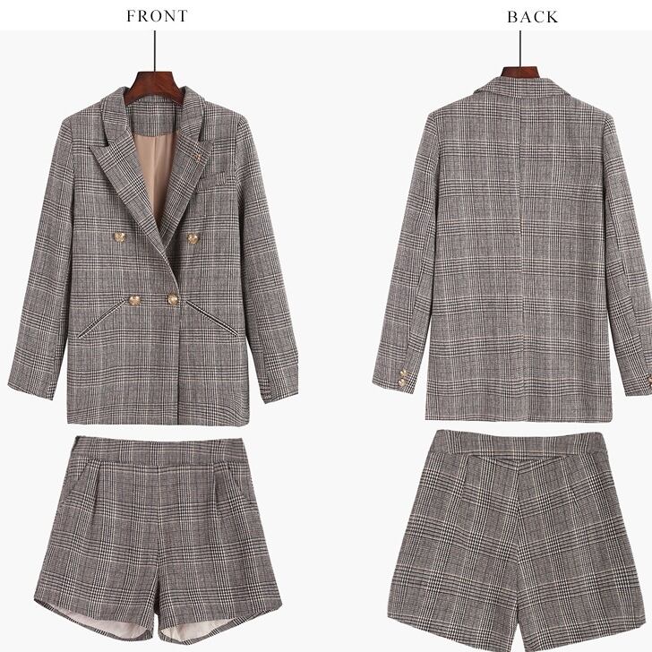 セットアップ ショートパンツ 20代 30代 40代 くすみカラー 2点セット ツーピース スーツセット グレンチェック柄 ダブルボタン ジャケット スリム シック 上品 大人っぽい クラシカル トラッド スリム 通勤 お出かけ 春秋 RB-R3-A02-0020