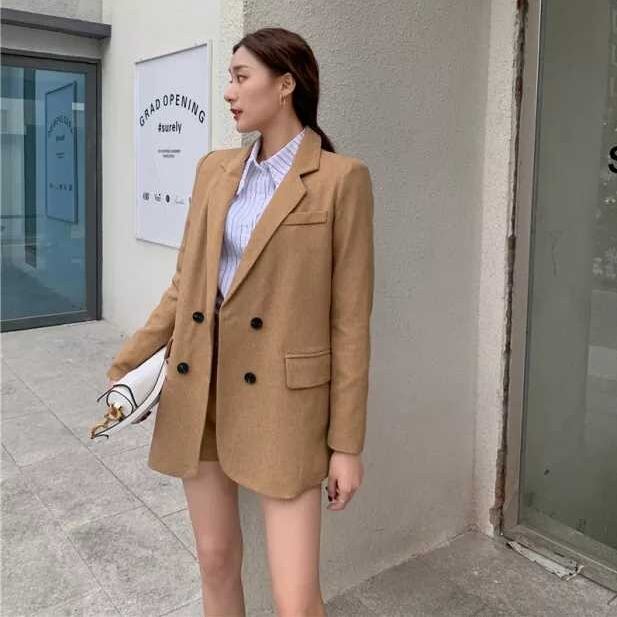 セットアップ ショートパンツ 20代 30代 40代 くすみカラー スーツ ツーピース 2点セット 無地 ダブルボタン ジャケット スタイリッシュ きれいめ カッコいい 通勤 お出かけ 韓国 春秋 RB-R3-A02-0026