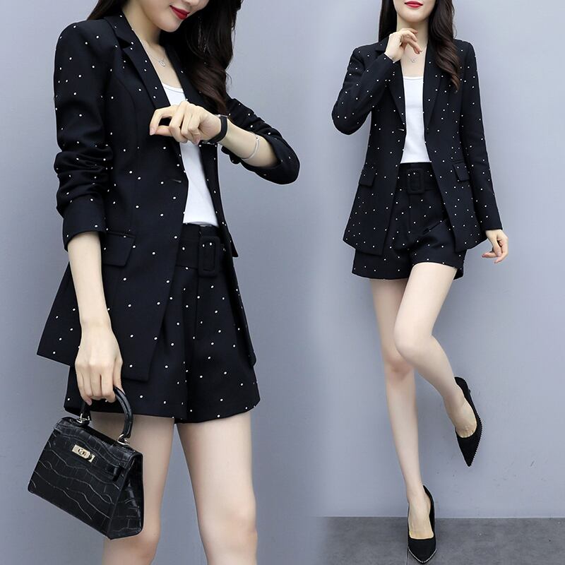 セットアップ ショートパンツ 20代 30代 40代 くすみカラー スーツ ツーピース 2点セット ブラック ドット柄 水玉 テーラードジャケット 大人かわいい キュート オシャレ 通勤 オフィス お出かけ 春 大きいサイズ RB-R3-A02-0028
