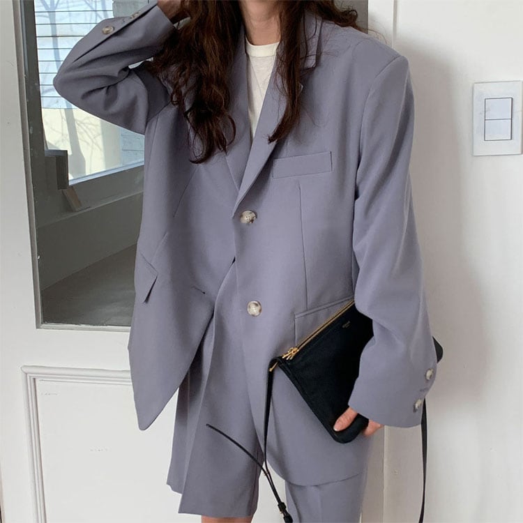 セットアップ ショートパンツ 20代 30代 40代 くすみカラー スーツ ツーピース 2点セット 無地 ルーズ ジャケット ハーフパンツ カジュアル メンズライク カッコいい オシャレ 通勤 オフィス お出かけ 春夏 RB-R3-A02-0036