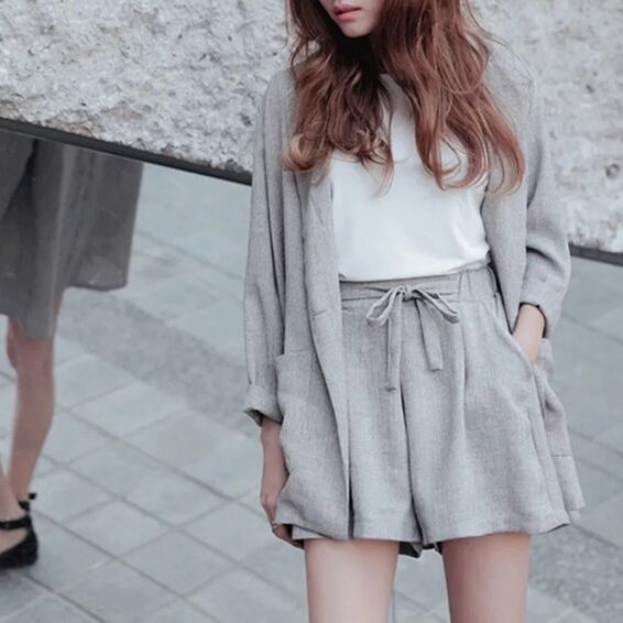 セットアップ ショートパンツ 20代 30代 40代 くすみカラー スーツ ツーピース 2点セット 無地 リネン混 無地 ジャケット ワイドレッグ カジュアル リラックス 涼し気 通勤 お出かけ 旅行 春夏 RB-R3-A02-0038