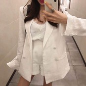 セットアップ ショートパンツ 20代 30代 40代 くすみカラー スーツ ツーピース 2点セット 無地 リネン混 ダブルボタン ジャケット ルーズ 薄手 大人カジュアル クール カッコいい お出かけ デート 春夏 RB-R3-A02-0043