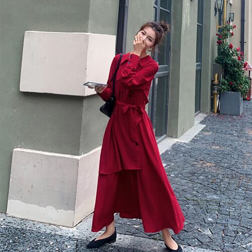 ワンピース Vネック マキシ丈 無地 スリット レディース ロングワンピース 春秋 通勤 OL 韓国風 30代 40代 RB-R3-04-SA03-0009