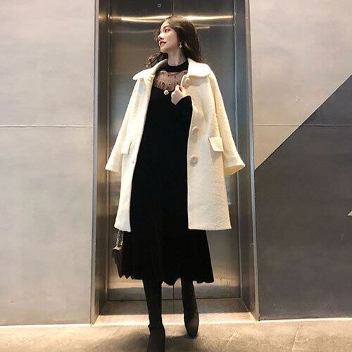 ワンピース 無地 フリル ドット長袖 結婚式 二次会 膝下丈 レトロ 春秋冬用 チュール切り替え ロング丈 RB-R3-04-SA03-0033