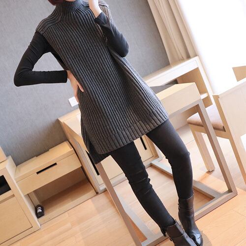 ニット ノースリーブ 無地 ベスト チュニック アウター 韓国風 体型カバー 大人 上品 着痩せ 3色 秋冬 RB-R3-04-SA03-0022