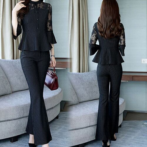 セットアップ ブラウス ワイドパンツ 上下セット ストライプ スーツパンツ RB-R3-04-SA03-0041