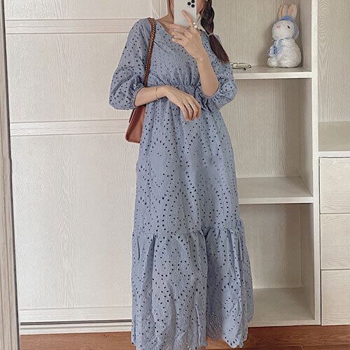 ワンピース レディース レースワンピース Vネック 無地 スリット マキシ丈 カジュアル RB-R3-04-SA03-0043