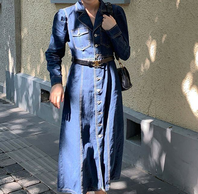 デニムワンピース Aライン ワンピース ロングワンピース おしゃれ お出かけ カジュアルワンピース RB-R3-02-MT03-0010