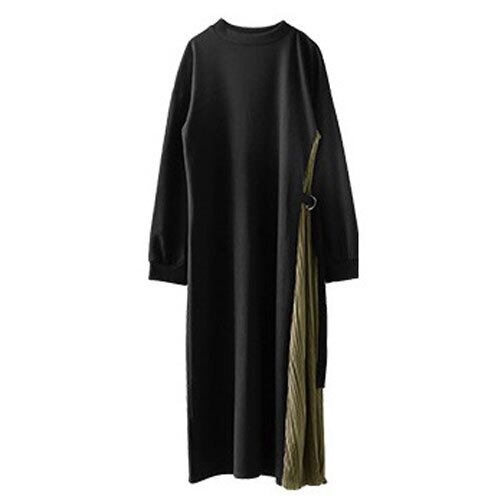 ワンピースサイドプリーツバイカラーコットンきれいめ 秋冬 ミモレ丈 アシンメトリー RB-R3-04-SA03-0035