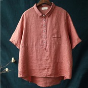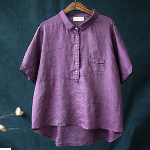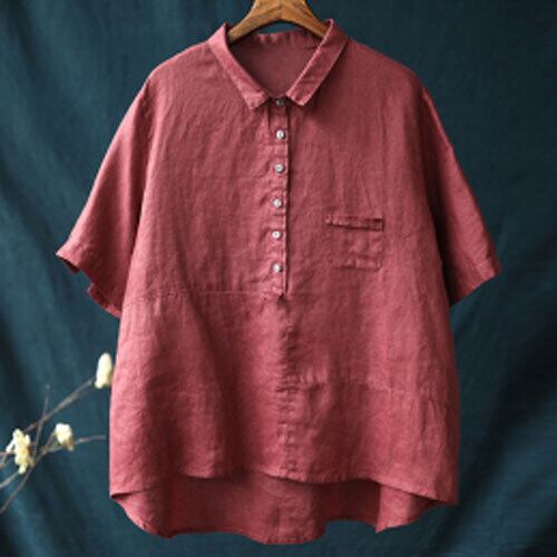 ブラウス レディース 半袖 リネンブラウス カジュアル 体型カバ— きれいめ RB-R3-04-SA03-0079