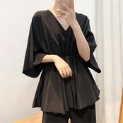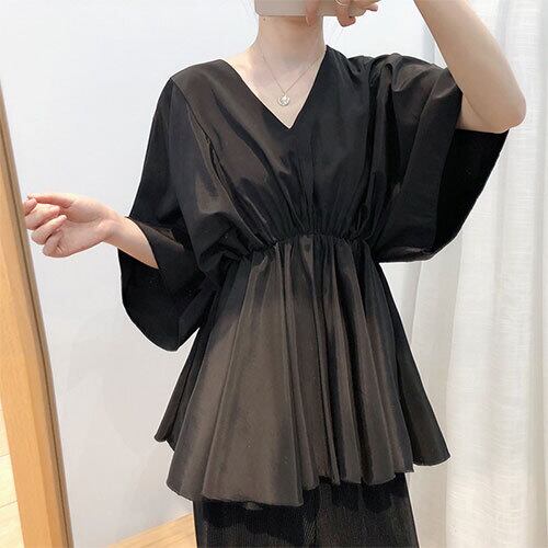 ブラウス レディース Vネック 半袖 トップス シフォンブラウス ギャザー カジュアル きれいめ RB-R3-04-SA03-0088