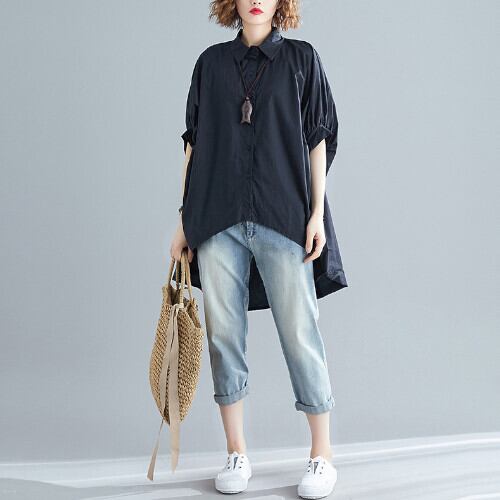 シャツ ブラウス トップス レディース 折り襟 コーデ ギャザー 無地 5分袖 綿 コットンリネン Tシャツ 春 夏 RB-R3-04-SA03-0076