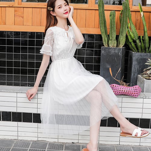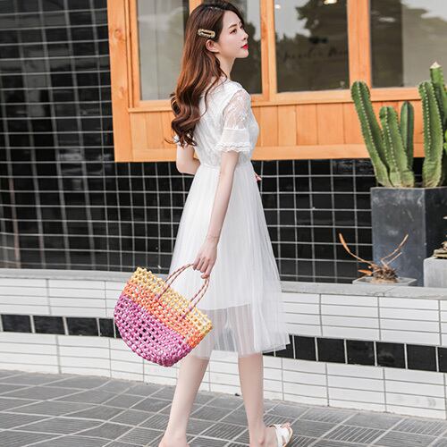 ワンピース レディース 半袖 マキシ丈 フレアスカート お出かけ 可愛い 無地 RB-R3-04-SA03-0108