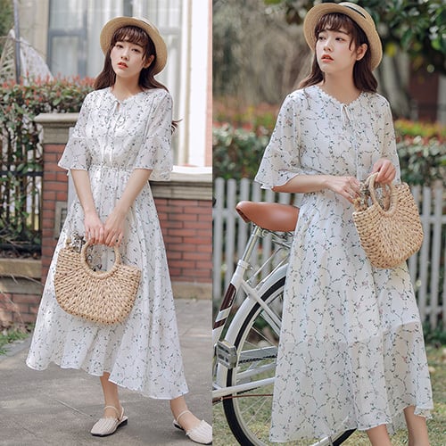 ワンピース レディース マキシ丈 半袖 花柄 フレア レース オシャレ お出かけ 可愛い 春 夏 RB-R3-04-SA03-0084