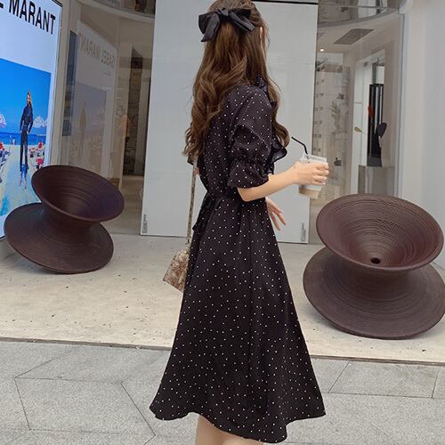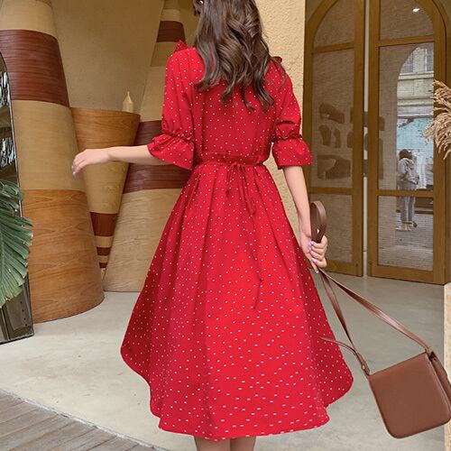 ワンピース レディース 半袖 マキシ丈 ドット柄 フレアスカート お出かけ RB-R3-04-SA03-0102