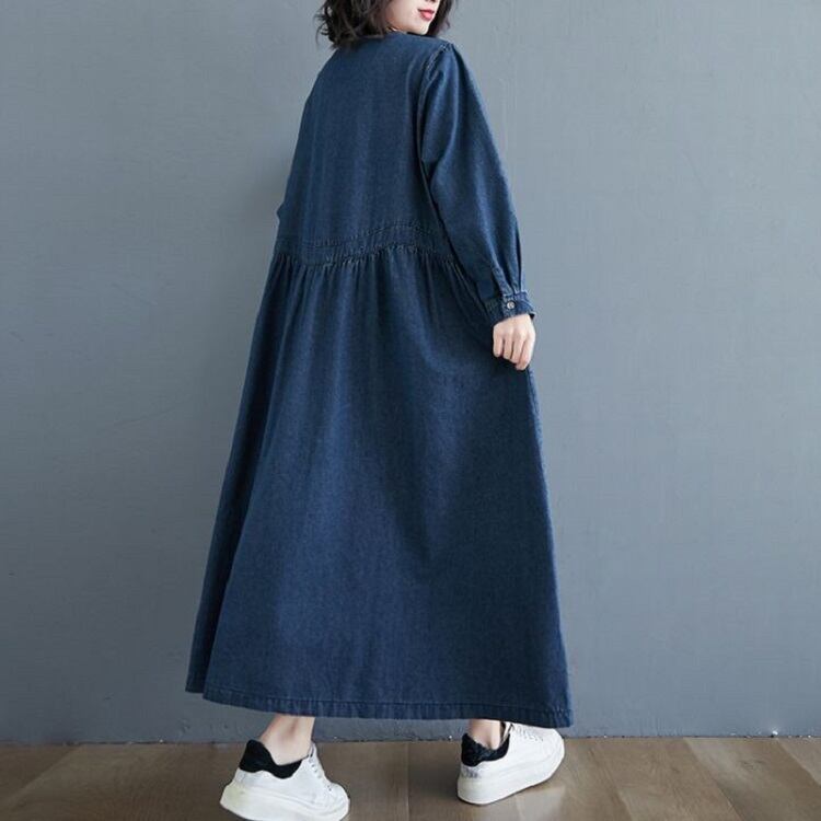 春 夏 くすみカラー 20代 30代 40代 デニムワンピース 大きいサイズ レディース お出かけ カジュアル ゆったり リラックス感 ロング丈 ミモレワンピース RB-R3-02-MT03-0023