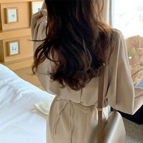 韓国風 ワンピース ミドル丈 Aライン 長袖 ハイウエスト ポロカラー 3色 レトロ カジュアル 夏 20代 30代 40代 くすみカラー RB-R3-09-SA04-0009