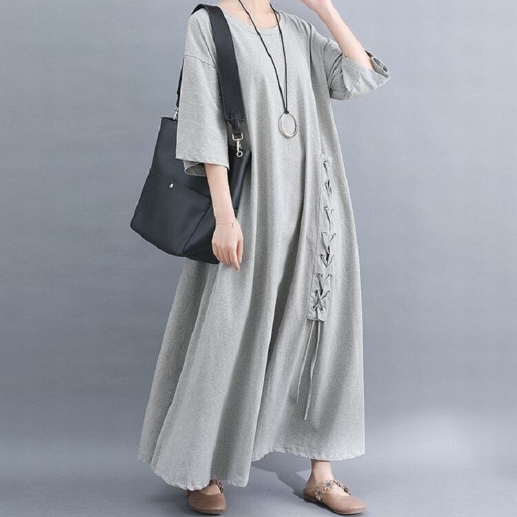 春 夏 くすみカラー 20代 30代 40代 マキシ ワンピース レディース 半袖 大きいサイズ ゆったり 部屋着 ルームウエアー RB-R3-02-MT03-0050