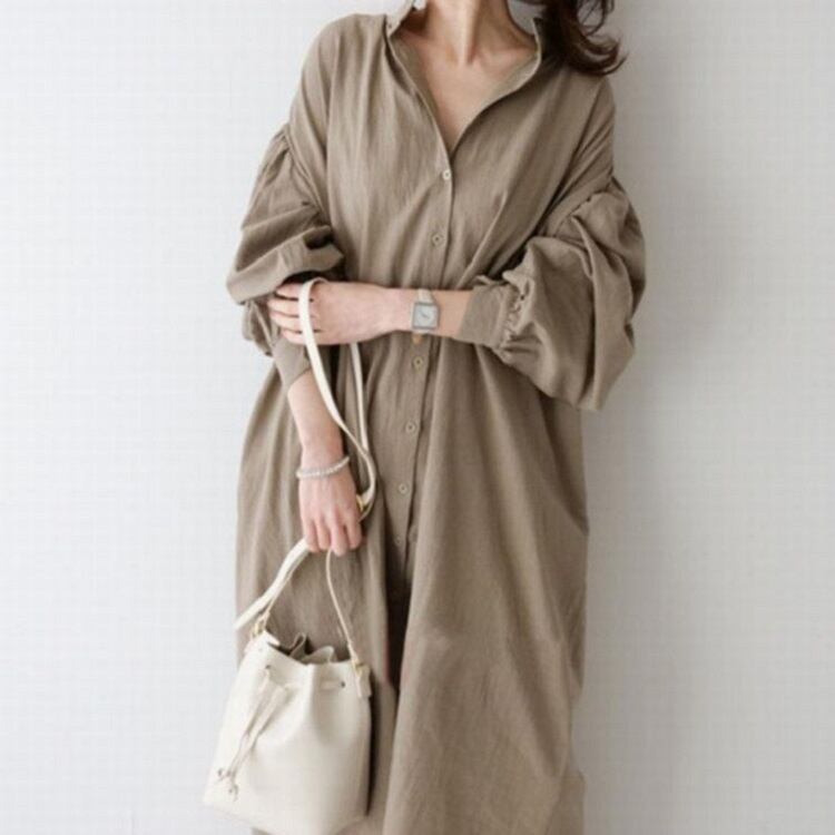 夏 20代 30代 40代 くすみカラー シャツワンピース レディース ワンピース ロング丈 レディース シャツ 長袖 ブラウス RB-R3-05-MT04-0001