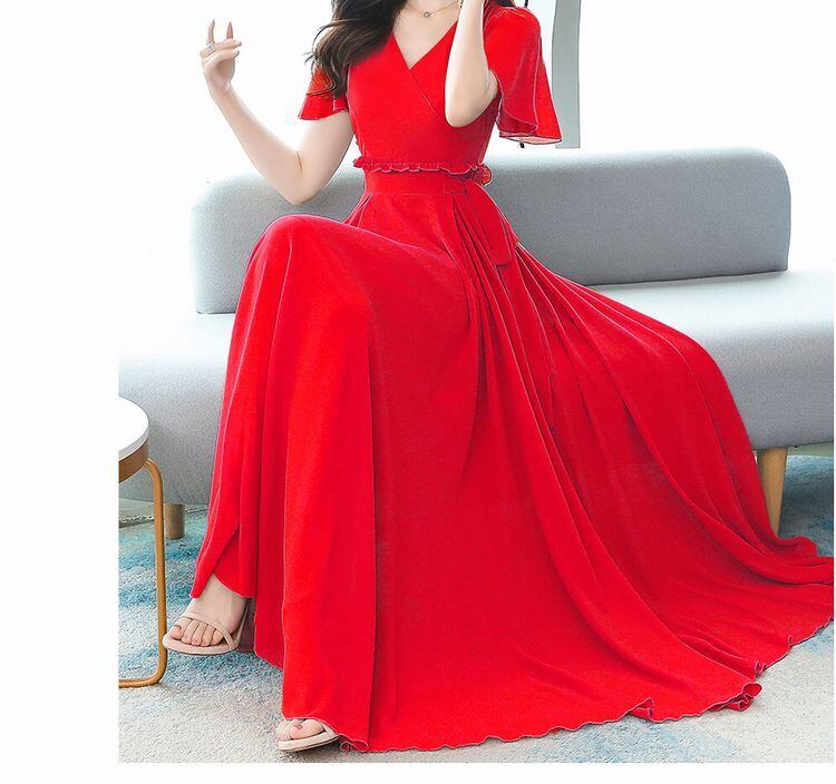 夏 20代 30代 40代 くすみカラー シフォンワンピース レディース フレア 大きいサイズ ロング丈 Vネックリゾート お呼ばれ 結婚式2次会 RB-R3-05-MT04-0018